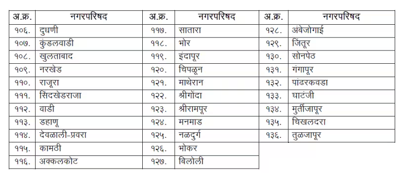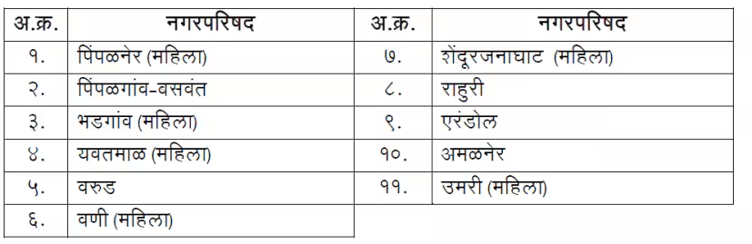 खुल्या प्रवर्गासाठीच्या नगरपरिषदा व नगरपंचायती